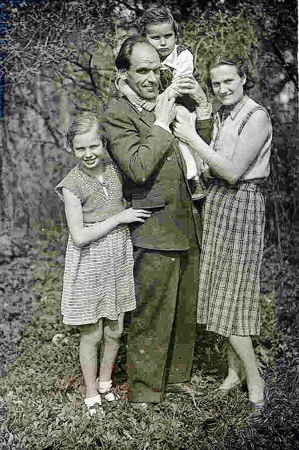 • Esimesel pildil oleme koos vanema õega ,ema ja isaga. Pildistatud nähtavasti Aavere kandis, kus isa oli vanadekodu direktor.